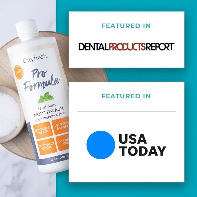 Oxyfresh Pro Formula Fresh Mint Mouthwash – Patented Zinc Mouthrinse for Fresh Breath, Healthy Gums & Bad Breath Treatment for Adults - Dye, Fluoride & Alcohol Free (16 Fl Oz)