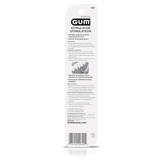 - EASY-TO-USE: The GUM dental stimulator features a long, angled neck that makes it easy to maneuver around hard-to-reach areas in the back of the mouth. Use the stimulator to massage the gums by sliding the rubber tip along the gum line and between teeth.