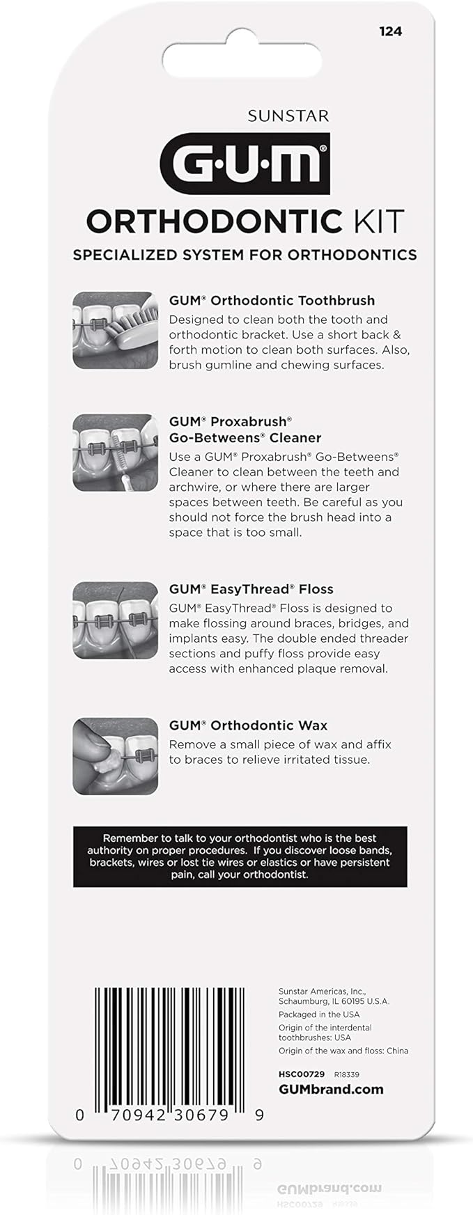 GUM Orthodontic Kit – Features Orthodontic Toothbrush, 3 Proxabrush Sizes and Shred-Resistant EasyThread Floss, and Mint Ortho Wax