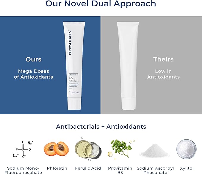 - Natural ingredients - The mint-flavored AO Pro Toothpaste is made using our signature antioxidants and essential oils such as peppermint oil, hydroxyapatite and chamomile. The hydrating toothpaste contains Provitamin B5 which attracts and retains moisture in tissue, shielding it from irritation.