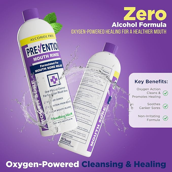 Prevention Mouth Sore Mouth Rinse, Canker Sore Treatment, Oral Pain Relief Mouthwash for Ulcers and Sores, Braces, with Hydrogen Peroxide, Alcohol-Free, Fluoride Free, 16 oz, Soothing Mint, 1 Pack