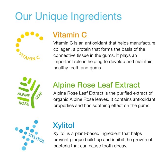 - 🐥 Safe, Natural, SLS Free Children Toothpaste - Enriched with Vitamin C, Xylitol & Alpine Rose Leaf Extract our anti-plaque formula is free of Parabens, SLES, and Carrageenan so it’s safe for infant to baby 6 to 12 months and up.
