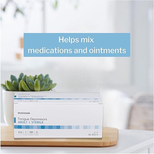 McKesson Tongue Depressors Adult Size, Sterile, Individually Wrapped, Wood, Unflavored, Splinter-Free (100, 6")