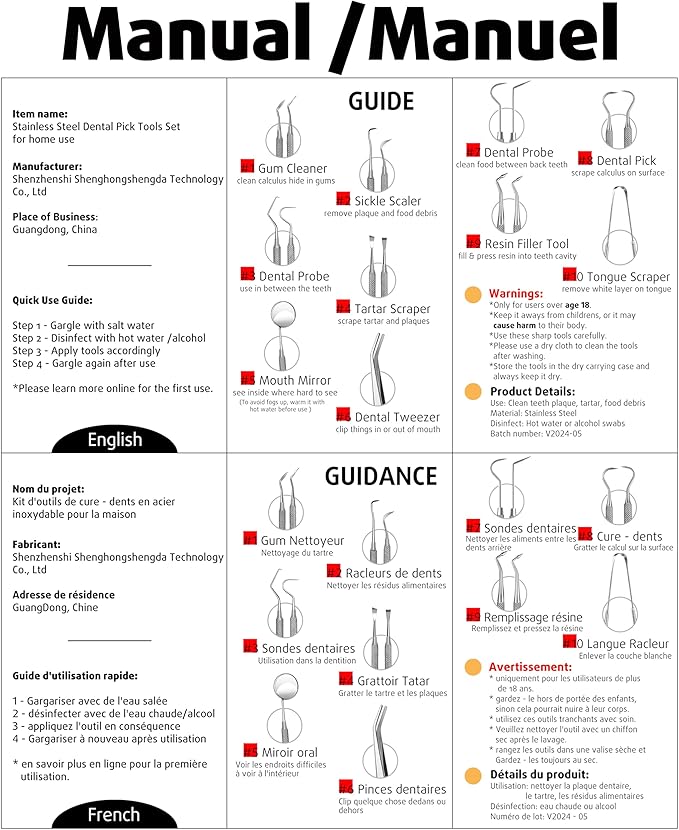- Easy Daily Care: Comes with quick step instructions for proper use. Anti-slip handle for comfortable grip and precise control, mouth mirror and angled tips for cleaning hard to reach area with confidence. Ideal for regular check for adults, kids, and pet dogs