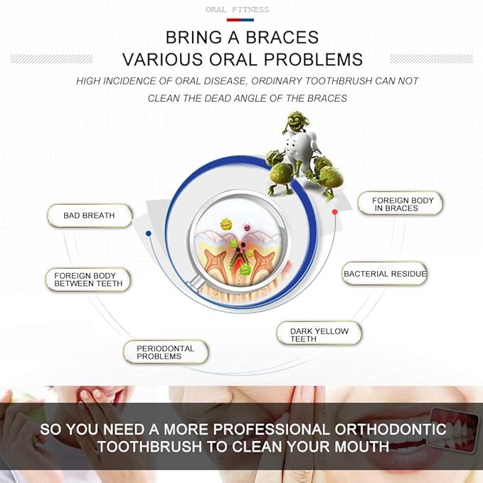 - ♥The bristles are soft and vary in length, showing a cone shape,focus on cleaning braces and gaps.