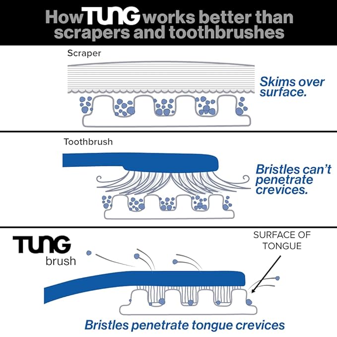 - NEVER FEEL ANXIOUS ABOUT BAD BREATH AGAIN: Fact: you can't smell your own breath; don't get caught not knowing! If you ever have lingering doubts about the freshness of your breath, The Original TUNG Brush and TUNG Brush Gel will give you complete confidence; WATCH OUR INFO VIDEO LOCATED IN OUR IMAGES TO LEARN THE FACTS