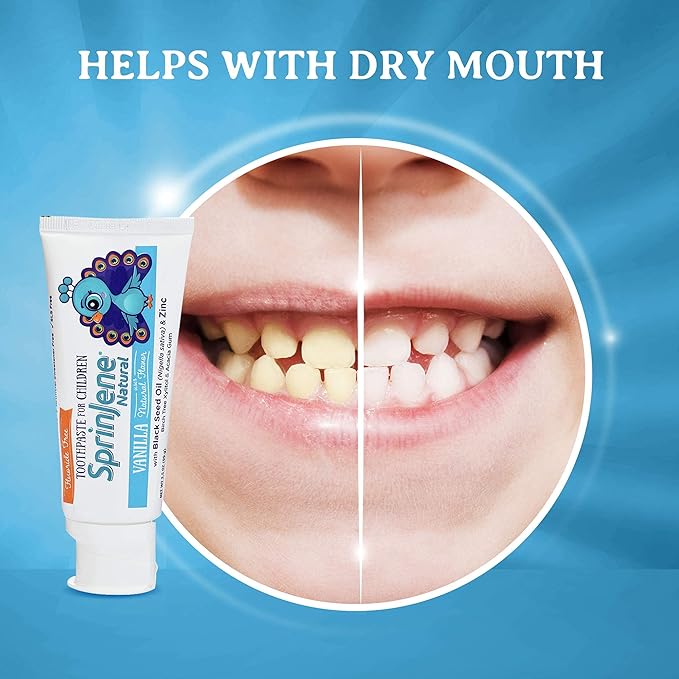 SprinJene Natural Children’s Toothpaste – Fluoride Free Vanilla Toothpaste for Toddlers & Kids – Gentle Safe Natural Formula with Patented Black Seed Oil & Zinc – Made in The USA (4 Pack)