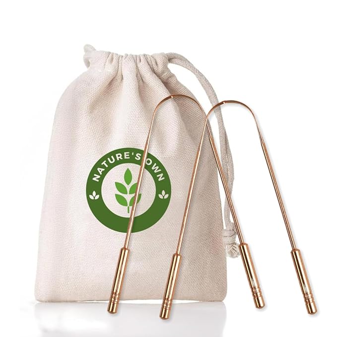 - Ayurvedic Copper Tongue Scraper: Made with 100% pure copper, this tongue scraper promotes oral hygiene by effectively removing tongue buildup and enhancing fresh breath for adults and kids.
