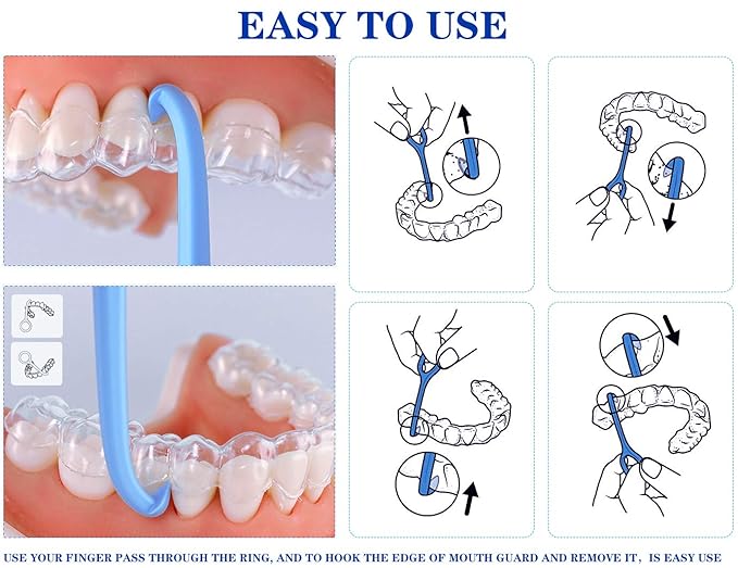 - ✔ Use Widely: It Also helps to remove:Clear aligners - Dentures - Retainers - Snap on veneers - Whitening Trays - Custom Trays - Brace/Braces Retainers - Rubber Brace Bands - Placers - Remove Dental Appliances - Orthodontic Elastic Bands - Top Bottom Upper Lower Clear Aligner - Appliance cases.