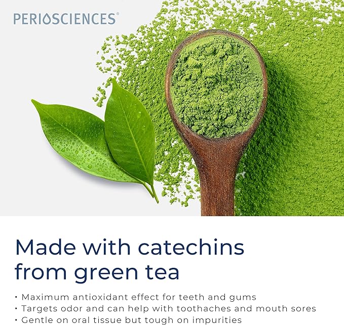 - For your oral health - Periosciences Natural Toothpaste gently removes stains + thoroughly takes care of your teeth without fluoride or harsh chemicals. Antioxidants phloretin and ferulic acid work with green tea catechins for maximum antioxidant effect on teeth and gums.