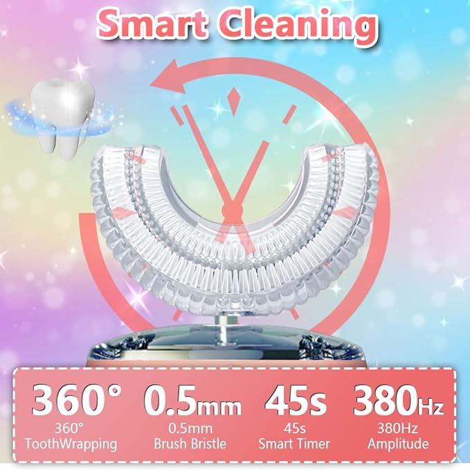 Kids Toothbrush Electric, U Shaped Ultrasonic Automatic Toothbrush with 2 Brush Heads, Six Cleaning Modes, Cartoon Modeling Design for Kids, Special for Birthday Gift (Pink, Kids 2-7)