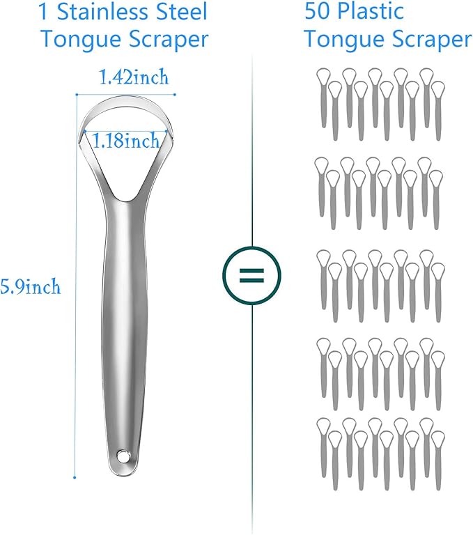 - ✅It Can Do What for You: If you had bad breath for several years, but didn’t know what causes it. Use brush, floss more and more, but none of that ever worked. You can't imagine how dirty our tongue was until using the tongue scraper. However, we know that why we have bad breaths and always feel food tasteless. The tounge scrapers can make your taste sensible. Cheers to waking up without horrid morning breath, enjoy every meal.