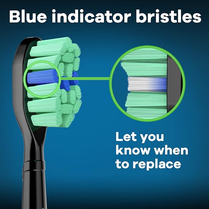 - 【Warm Indicator Bristles and Easy to Install】Just pull out your old brush heads and snap the new one on, easily and smoothly. Brush heads become less effective after 3 months of use, but we'll remind you before this happens. Just monitor your blue replacement indicator bristles, the Indicator bristles will fade in color to remind you it’s time to replacement your toothbrush heads, ensuring your most effective clean.