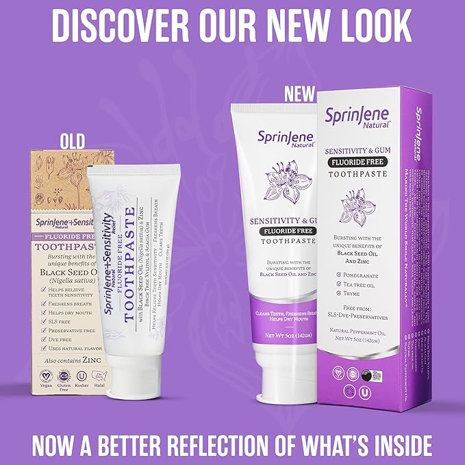 SprinJene Natural Fluoride Free Toothpaste for Sensitive Teeth & Gums – Patented Toothpaste with Black Seed Oil & Zinc – Vegan Dry Mouth Prevention for Fresh Breath – Made in The USA (2 Pack)