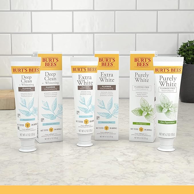 - Includes three 4.7 oz tubes of Burt’s Bees Purely White Zen Peppermint Fluoride-Free Toothpaste