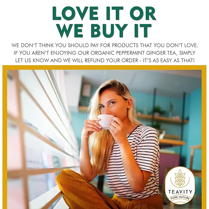 Teavity Organic Peppermint Ginger Tea Pods for Keurig - Decaf, 24 Count
