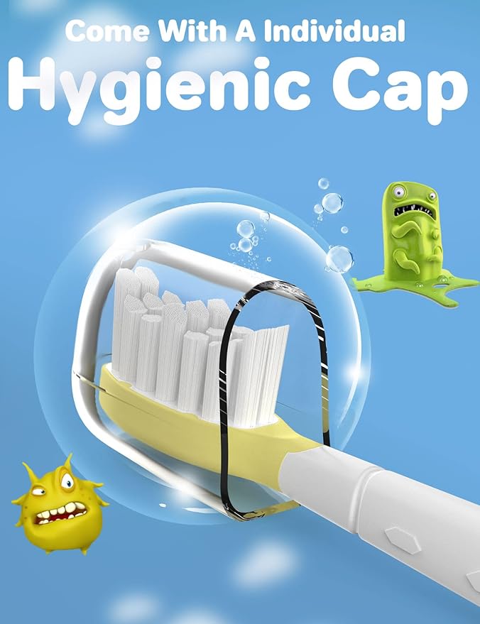 - SPECIFICALLY DESIGNED CHILDREN AGES 7+: This toothbrush is designed to perfectly fit the mouth and teeth of children ages 7+ for an optimal cleaning performance and experience. The toothbrush heads feature a soft, food-grade rubber (BPA-free) outer layer which prevents the brush head from colliding with gums, ensuring better care your kids' tender gums.