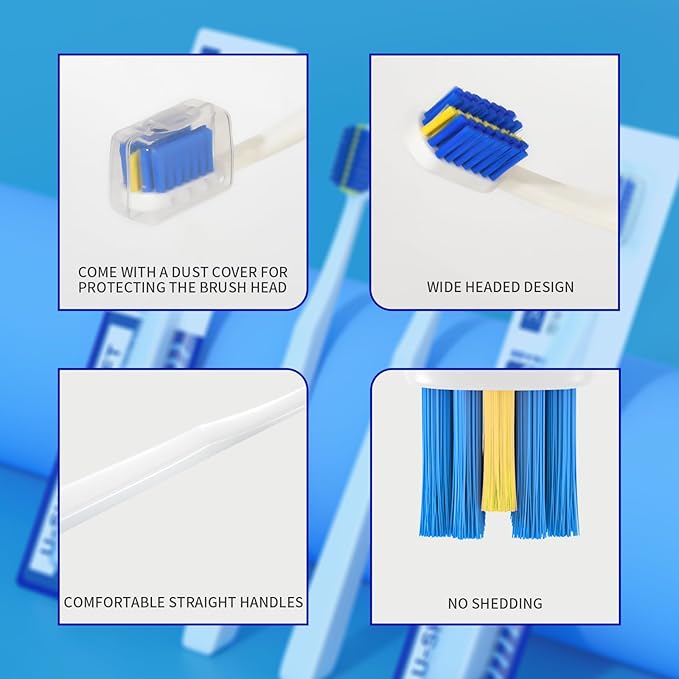 - 🦷New Upgraded Orthodontic Toothbrush: Wide headed design for the Orthodontic people. U-Shaped bristles closely fit the tooth, easily clean the area around your orthodontic appliances without hooking.