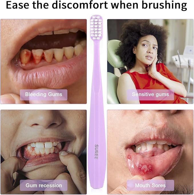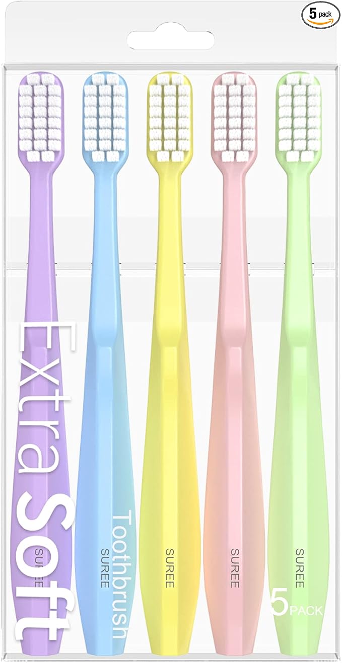 SUREE Extra Soft Toothbrush for Sensitive Teeth and Gums (5 Pack), Ultra Soft Toothbrush with 10000 Micro Nano Bristles for Adults and Elderly