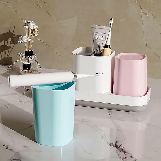 - 【Kids Toothbrush Holder Cup Set】 This set of bathroom toothbrush Holders includes 2 colored bathroom cups. Design 3 divided slots to holder toothpaste and 2 electric toothbrushes. Perfect for kids, couples, and bathroom accessories organizer holder.
