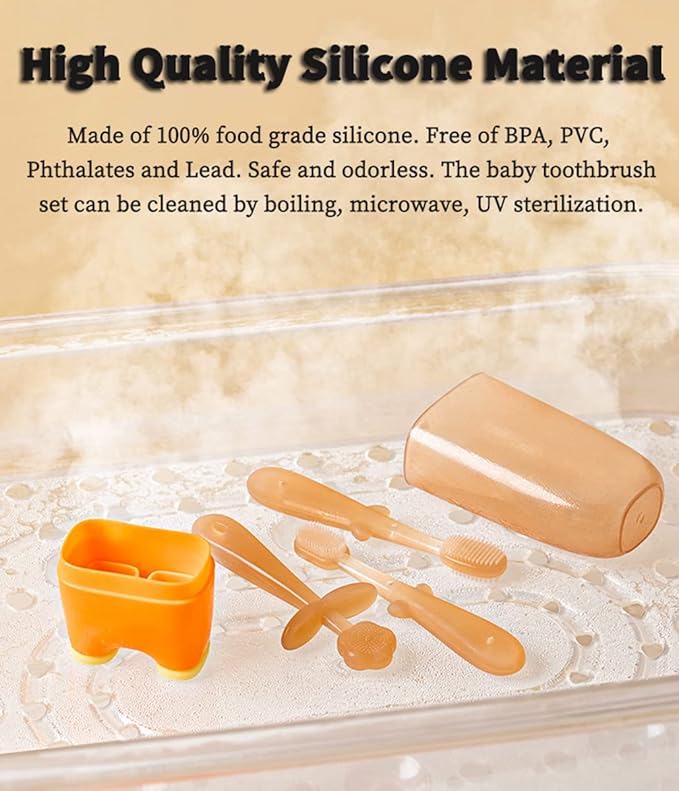 - 【High Quality Materials】Our baby toothbrush made of nipple-grade liquid safety silicone, one-piece molded, safe and tasteless, care for your baby’s mouth. It can be cleaned by boiling, microwave.
