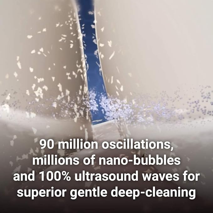- WAVE, DON’T BRUSH – To use, spread the ultrasound activated nano-bubble toothpaste on your teeth. Hold the device head over each section of your teeth (don’t brush). A timer (beep-sound) and brief interruption of the vibration will alert you to move on to the next section after 6 seconds. The bristles serve as antennas to transmit over 90 million ultrasonic impulses per minute to give you clean, smooth teeth without abrasive brushing. Similar to the ultrasound used at dentists’ offices.