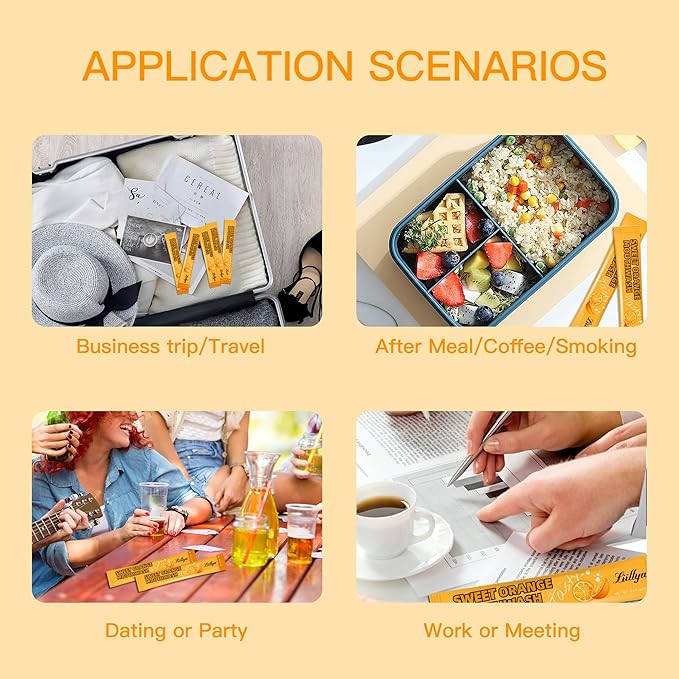 - Long-Lasting Fresh Breath : These convenient travel-size packets help reduce odor and surface buildup, and support oral hygiene. These portable mouthwash sachets help maintain daily oral hygiene and keep your breath fresh after meals, coffee, or smoking—no sink or brushing required.