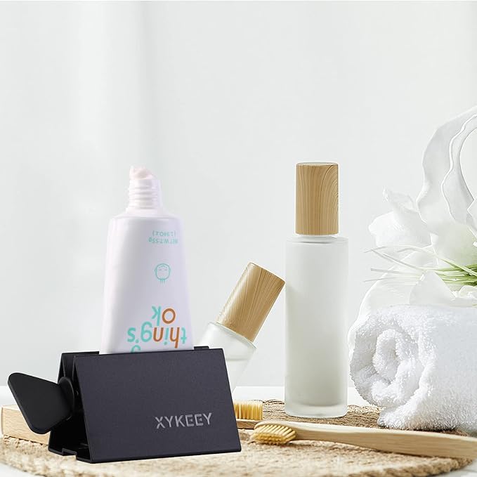 XYKEEY Toothpaste Tube Squeezer - Set of 2 Toothpaste Squeezer Rollers, Metal Toothpaste Tube Wringer Seat Holder Stand (Black)