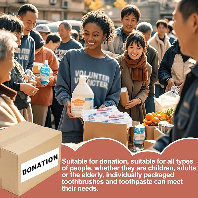 - 4、Each Toothbrushes individually wrapped set is packed in a plastic zipper bag, so you can put it in your backpack, suitcase, or you can assign it to people who need it.