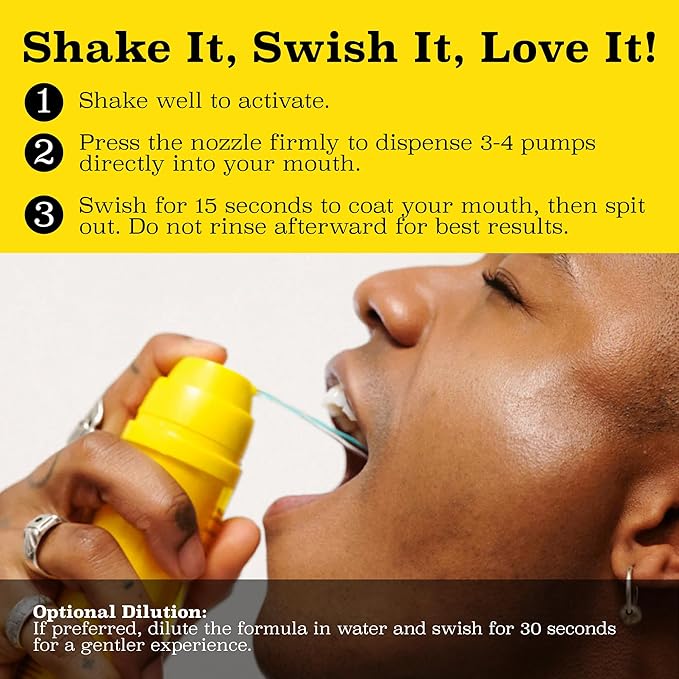 - EASY TO USE: Simply shake, dispense 3–4 pumps, swish for 15 seconds, & spit. For a gentler rinse, mix with water & swish for 30 seconds. No need to rinse after.