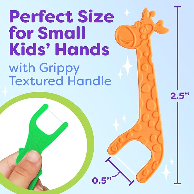 - A GRIPPY HANDLE FOR CHILDREN - We designed a textured handle for our floss sticks: it prevents kids from dropping the dental picks, and it’s easy for your little ones to hold. The size of the kids floss picks is perfect for a child’s small clumsy hand.