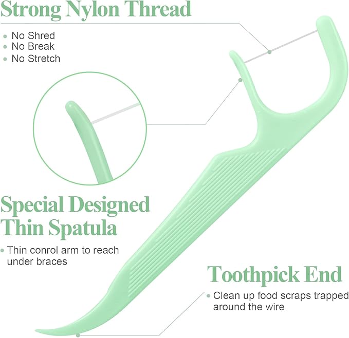 300 Count Orthodontic Flossers for Braces with Floss Dispenser, Braces Flossers for Kids Teeth & Adults, Dental Floss for Braces, Dental Floss Picks, 50 Count Bag (Pack of 6)