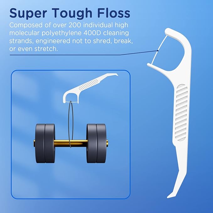 - Super Floss: Engineered not to stretch, shard or break.
