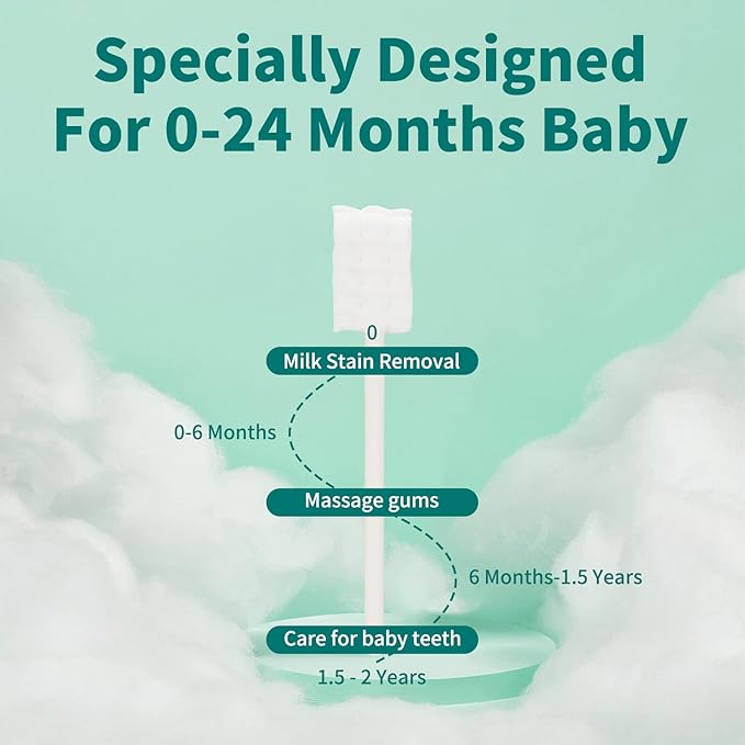 - 💕【Designed Specifically for Babies】baby oral cleaning stick brush head with 3D wave design, 360 ° clean mouth without residue, brush head surface with double car seam fixed, in use will not shift, increase the contact surface, fit the dental bed, not only to clean the mouth, but also to achieve the effect of massage gums.