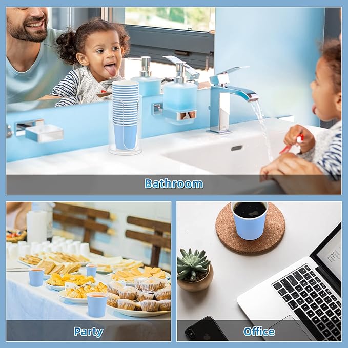 - 【Unique Sky Blue Design】Vibrant color design, no matter in the bathroom or bedroom look so harmonious. The paper cups are just the right size for rinsing your mouth after brushing or providing enough water to wash down