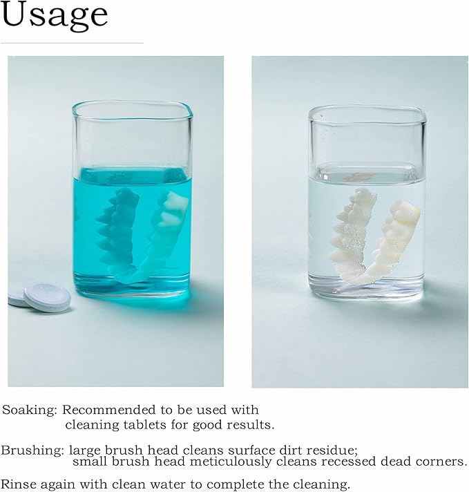 - Easy to use: Our denture cleaning brush has a cleverly designed rubber handle that is easy to use. The multi-layered bristles and angled brush head reach most parts of the denture, easily and effectively reaching the denture gap and cleaning the denture.