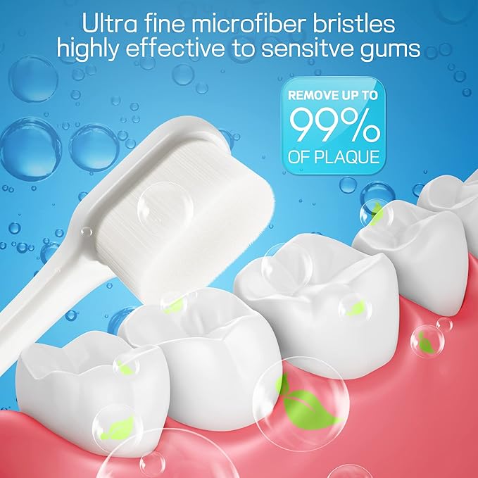 - ULTRA SOFT - Made with New Japan nano technology, the bristles are thin and soft, thickness only at 0.08mm, much thinner and softer than regular toothbrush( 0.12mm), providing massage to the gums and deliver gentle oral care.