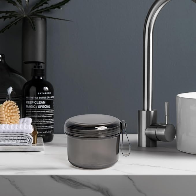 - β HUMANIZED DESIGN: According to user needs, we have upgraded and improved the functional features of durability, safety, waterproofing, beauty, and portability. It is larger than typical denture cups on the market, so you don't have to worry about the denture bath case being too small to fully soak. In addition, it also comes with a silicone handle that can be rotated, making it easy to carry and move around.