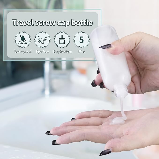 - WIDE RANGE OF USES: Versatile: 3.4oz (100ml) screw cap travel bottles are available for your travel refill needs. These travel bottles are perfect for carrying your cosmetics such as toners, lotions, oils, hand soaps, shampoos and more.