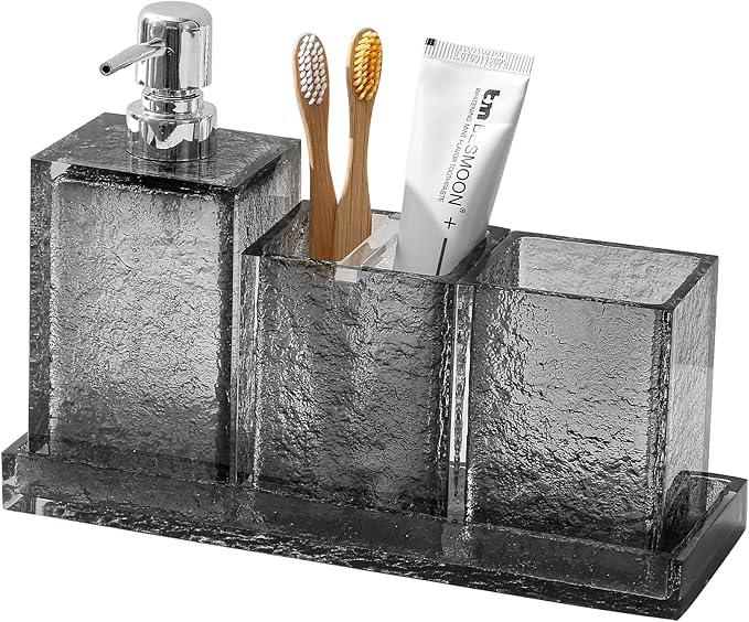 - Fashion design: The appearance of this bathroom set looks very fashion, and the gray clear design makes it look different, and you can use the tray as a soap dish and other small items to decorate. It's a perfect gifts for Christmas, New Year, Thanksgiving day, wedding, house warming, a couple, birthday.