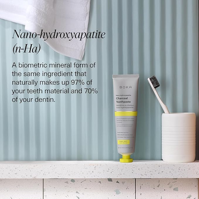 - ENAMEL CARE: Our proprietary and innovative formula includes Nano-hydroxyapatite (n-Ha) - a biometric mineral form of the same ingredient that naturally makes up 97% of your teeth material and 70% of your dentin. n-Ha has been the subject of significant research for decades with a wide variety of potential benefits across dentistry and oral care.