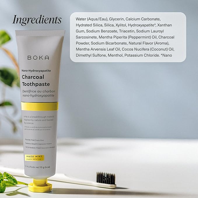 Boka Fluoride Free Toothpaste, Nano Hydroxyapatite Toothpaste, Appropriate for Sensitive Teeth - for Adult, Kids Oral Care - Charcoal Yuzu Mint Flavor, 4 Fl Oz 1Pk US Manufactured
