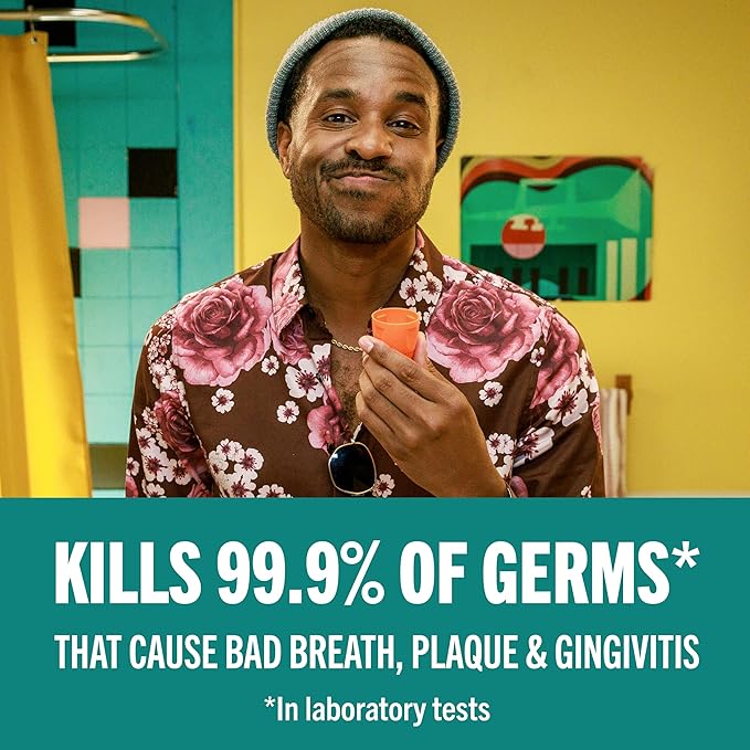 - Kills Germs Without the Burn; Swishing this mouthwash kills 99.9% of germs that cause bad breath, plaque and gingivitis in laboratory tests.