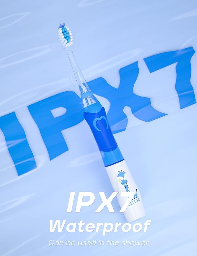 - Safe Materials and Timer: The SEAGO kids' sonic toothbrush handles are made of food-grade ABS and TPE, and the toothbrush heads feature soft bristles to safeguard children's tooth enamel. This kids' toothbrush includes a timer to help children achieve the dentist-recommended brushing duration