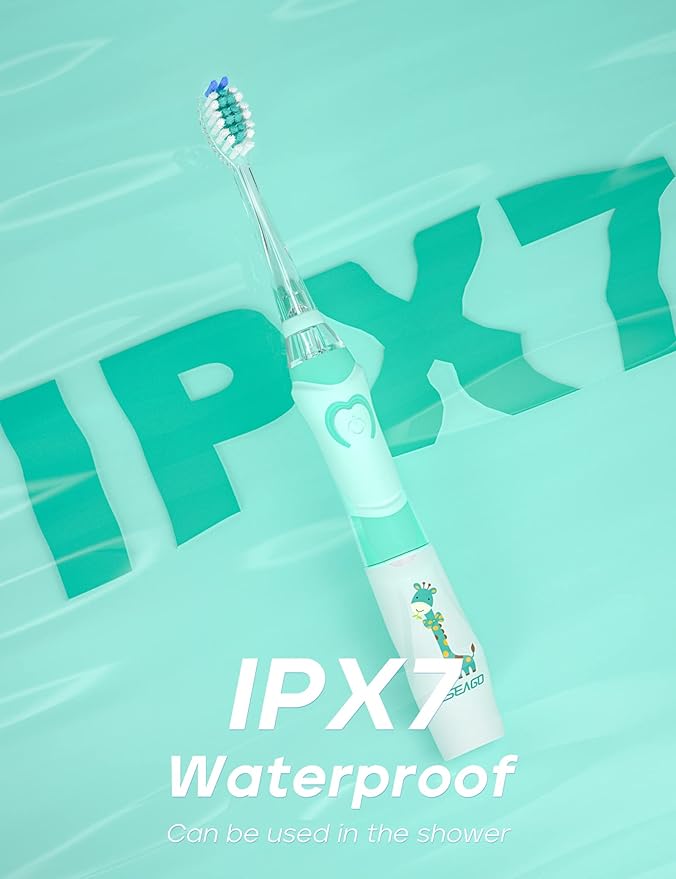 - Safe Materials and Timer: The SEAGO kids' sonic toothbrush handles are made of food-grade ABS and TPE, and the toothbrush heads feature soft bristles to safeguard children's tooth enamel. This kids' toothbrush includes a timer to help children achieve the dentist-recommended brushing duration