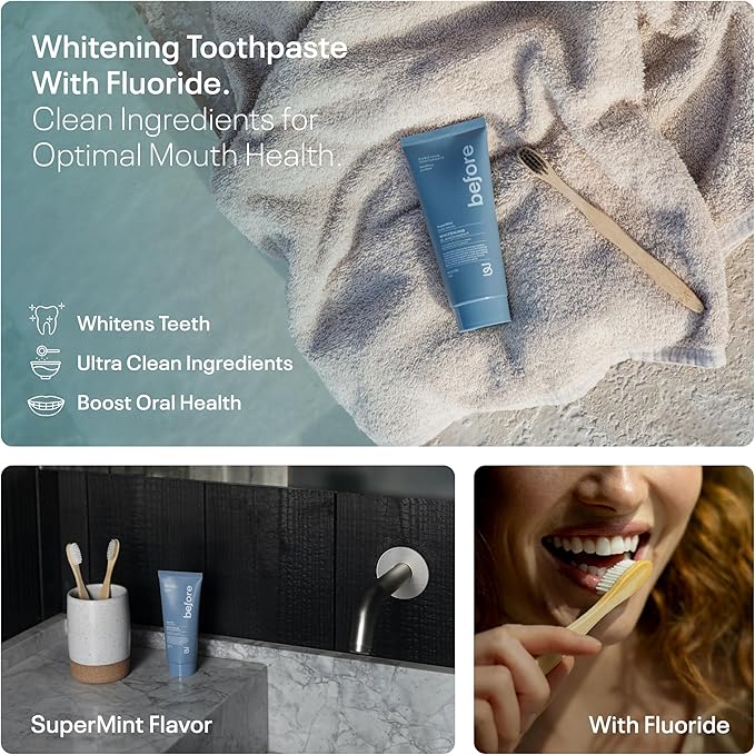 - ALL NATURAL WHITENING. Upgrade your brushing with a 2 pack of Whitening Toothpaste from Before. Start seeing whiter and brighter teeth with this custom blend of premium ingredients that strengthen tooth enamel and fight cavities.