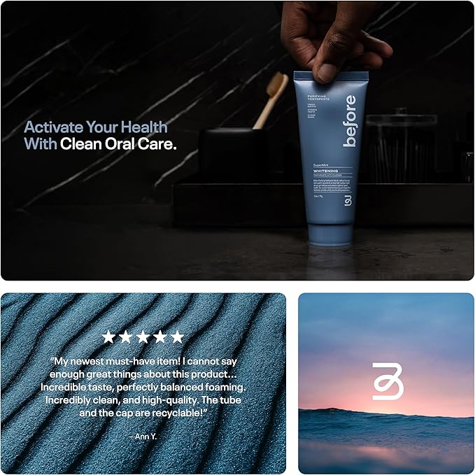 Before | Whitening Anti-Cavity Toothpaste | Vegan, Reduces Plaque for Gum Health, Balanced Foaming, Low Abrasion, Long Lasting Minty Fresh Breath, Plant-Based 3.5oz Tubes, Made in The USA — 2 Pack