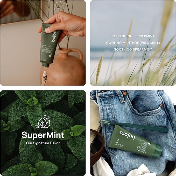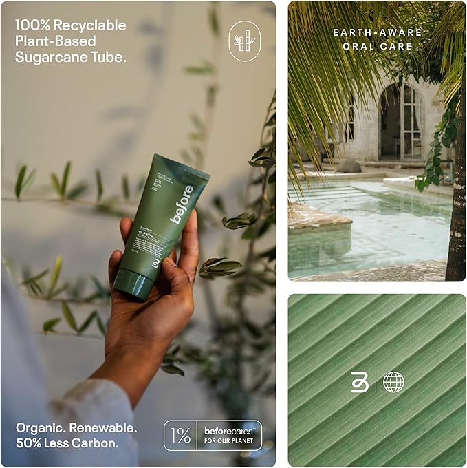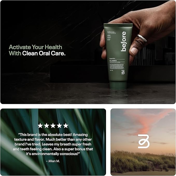 Before | Classic Anti-Cavity Toothpaste | Vegan, Reduces Plaque for Gum Health, Balanced Foaming, Low Abrasion, Long Lasting Minty Fresh Breath, Plant-Based 3.5oz Tubes, Made in The USA — 2 Pack