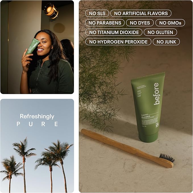- ALL NATURAL CLEANING. Before's Classic Toothpaste goes to battle against tooth degradation with our custom blend of premium ingredients. This 2 pack fights cavities and strengthens tooth enamel without harmful chemicals.