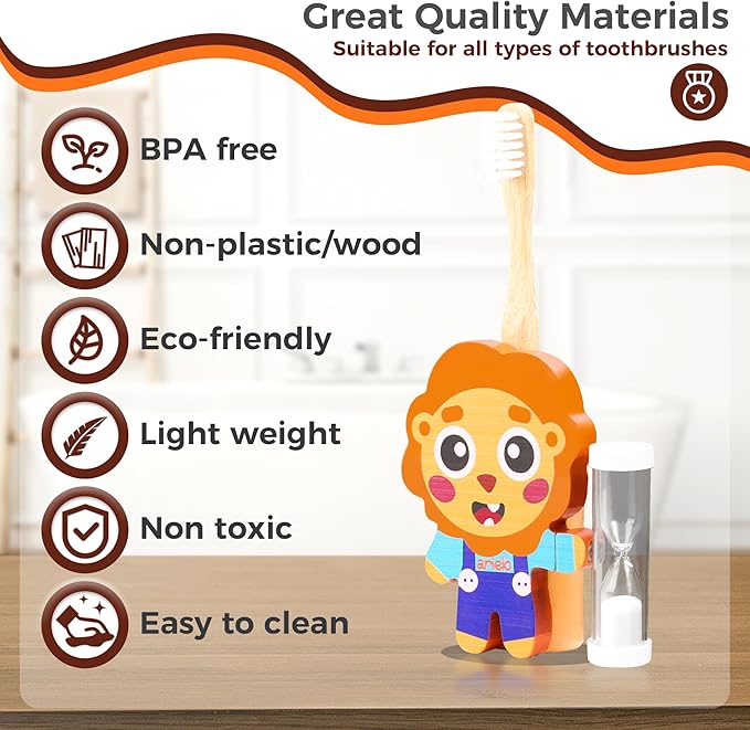 Arielo Lion Toothbrush Holder - Kids Toothbrush with Timer - Autism & Sensory Kids (Leo)